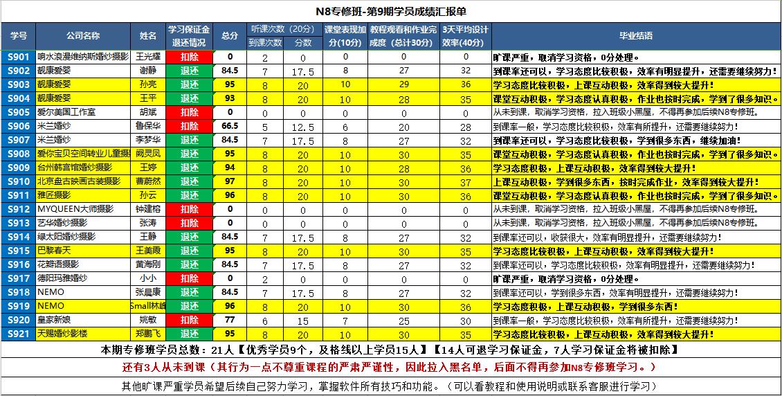 本期專修班學(xué)員學(xué)習(xí)成績報告: