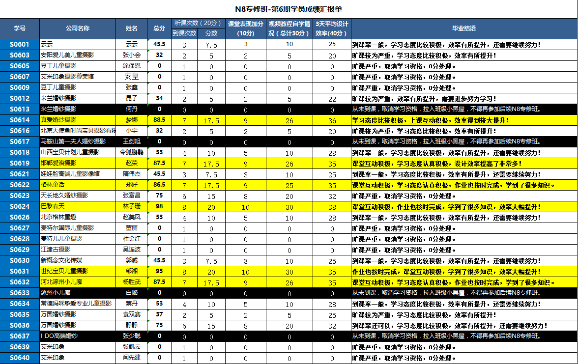 N8專修班第6期學員反饋及成績報告