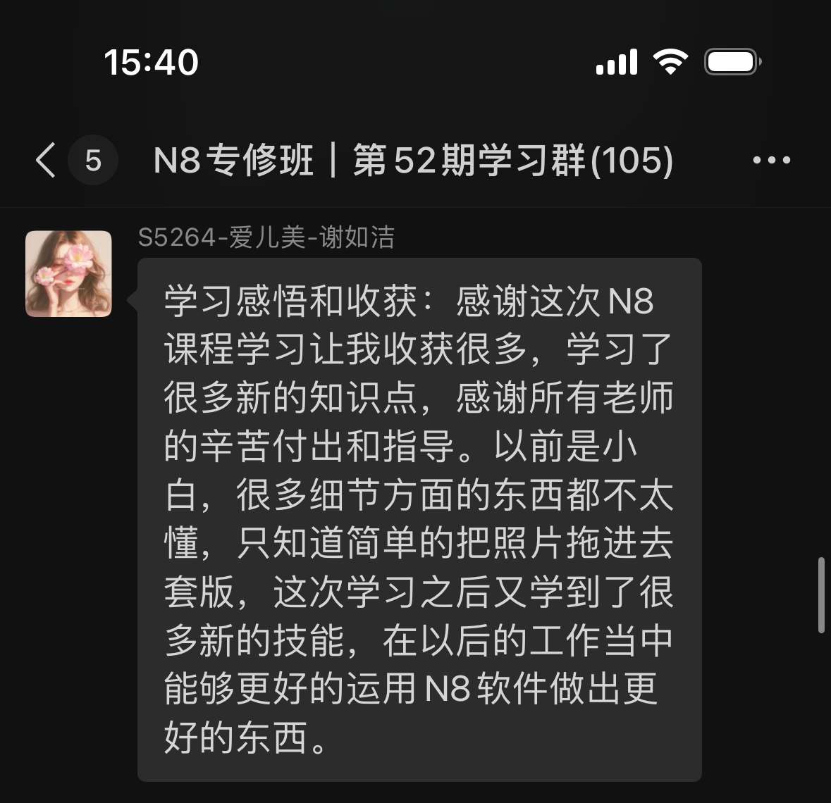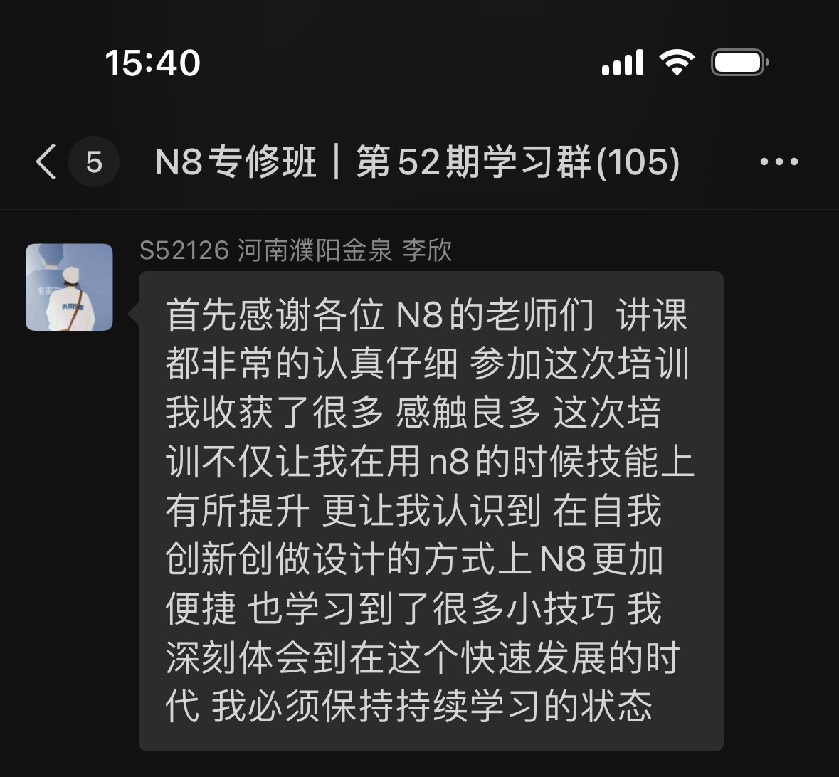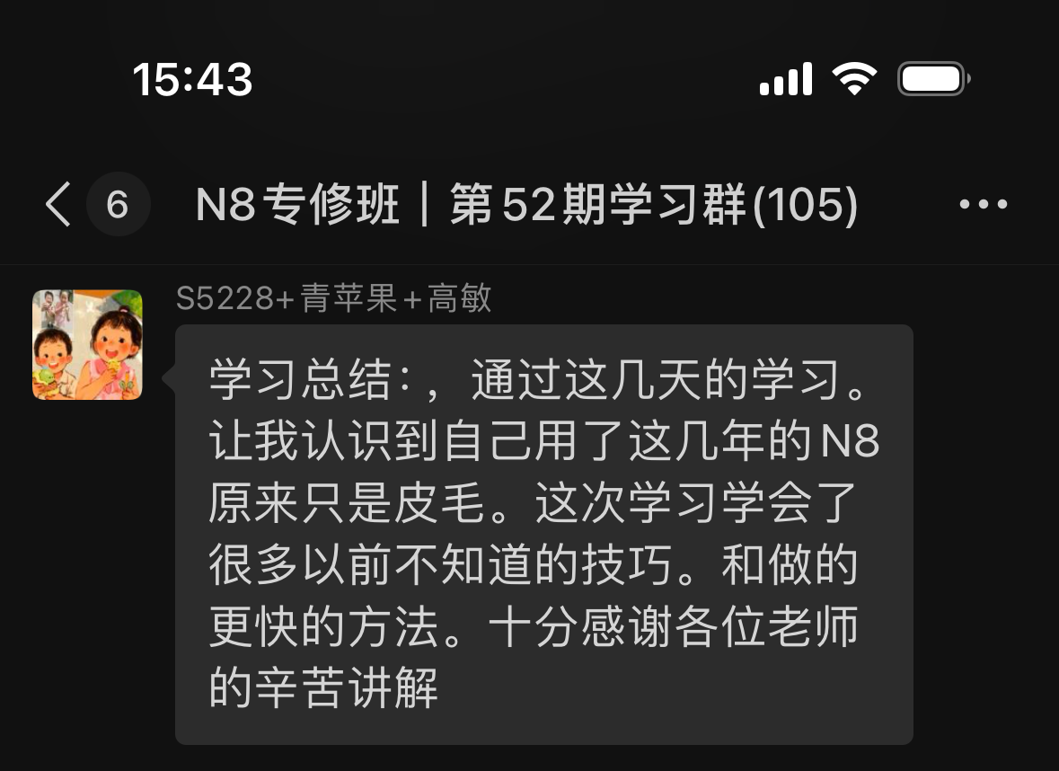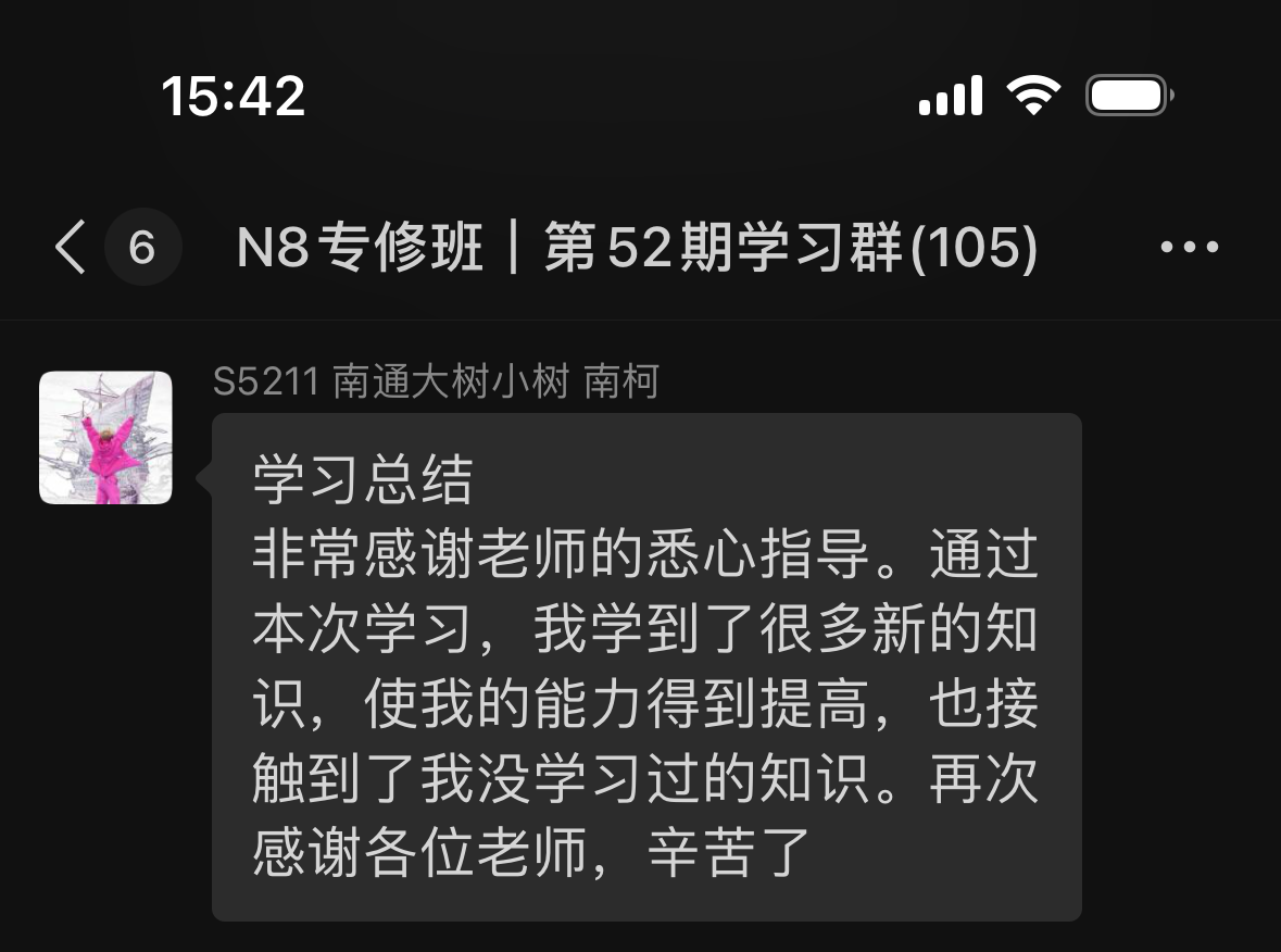 N8專(zhuān)修班第52期學(xué)員反饋和學(xué)習(xí)心得