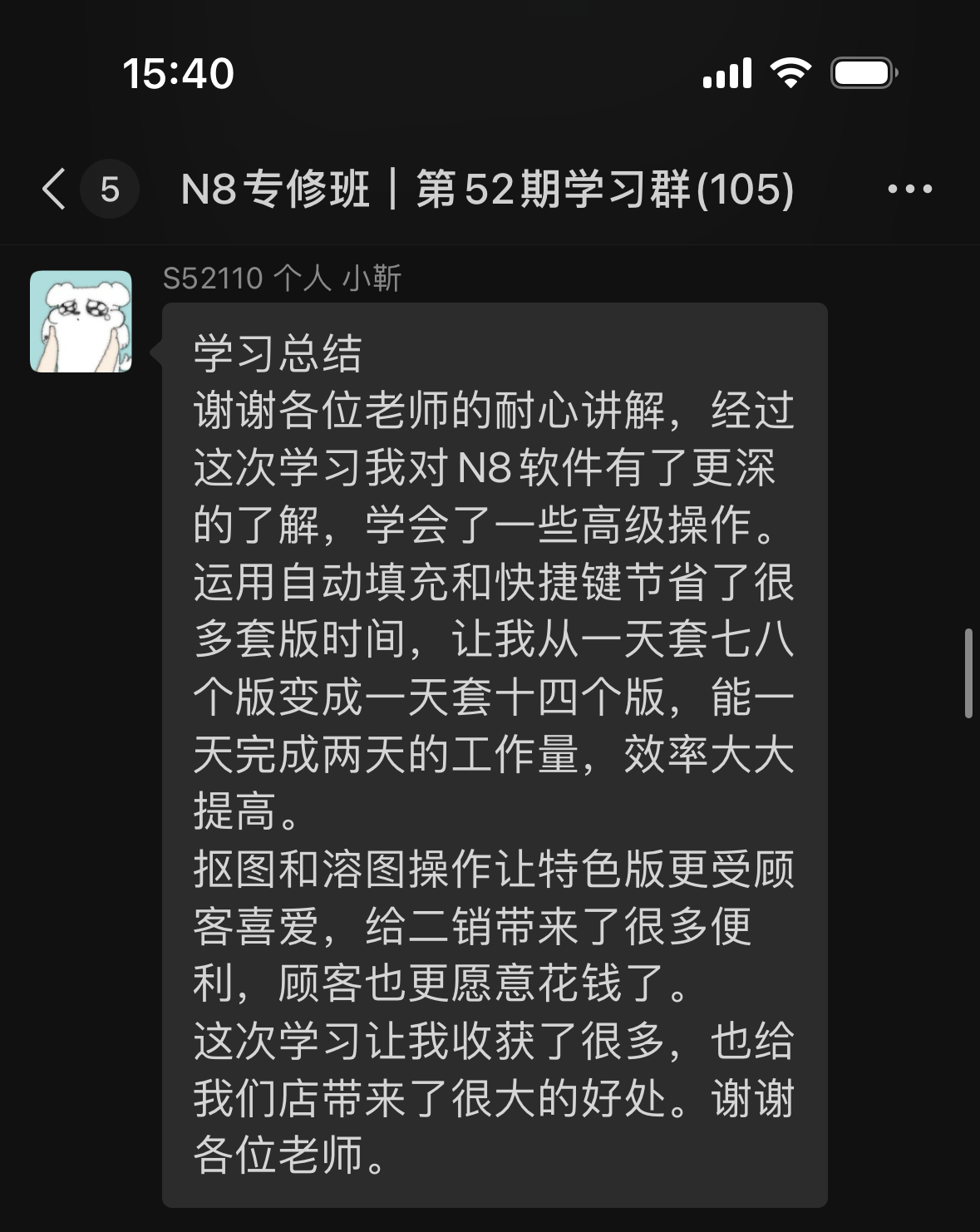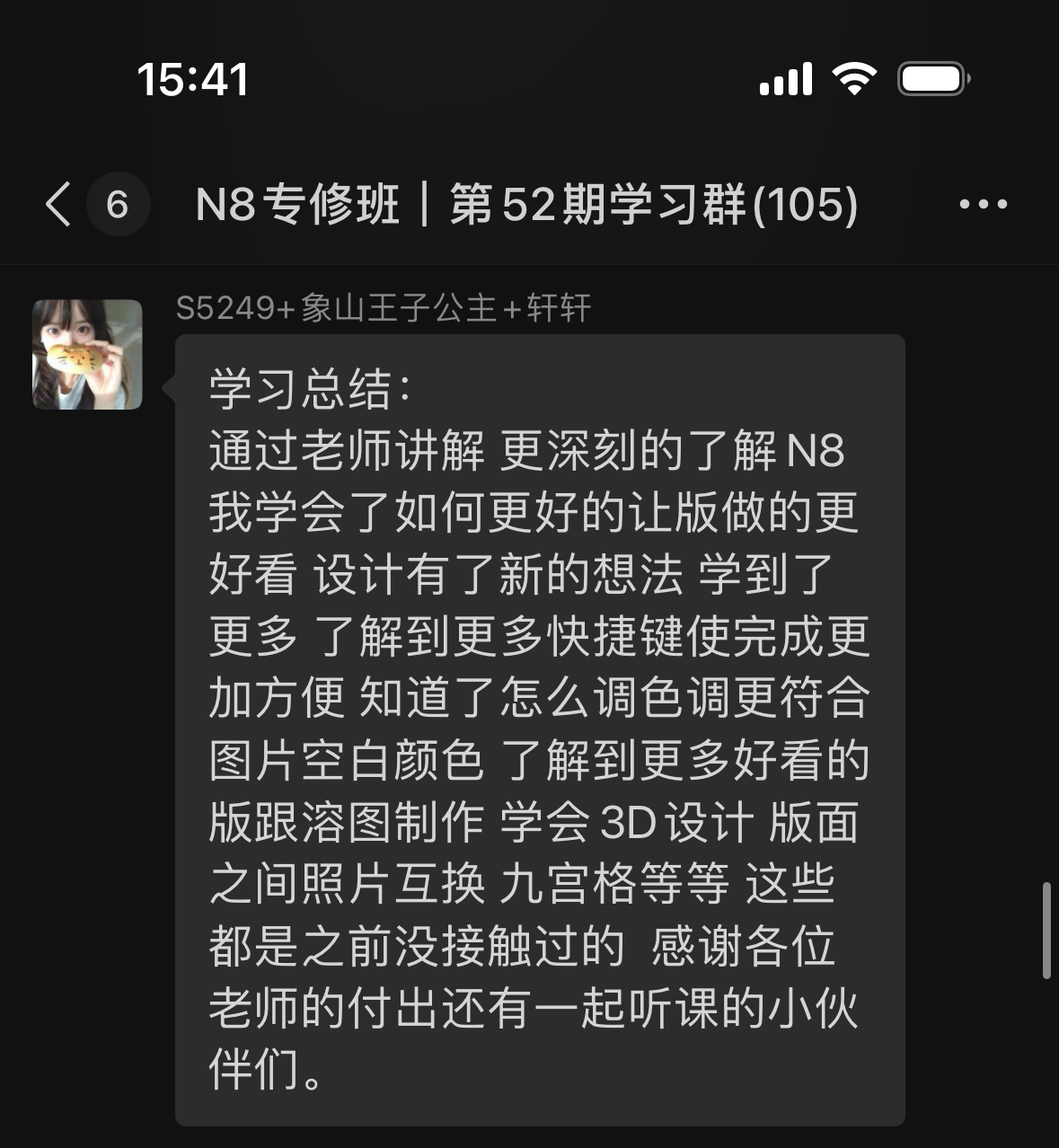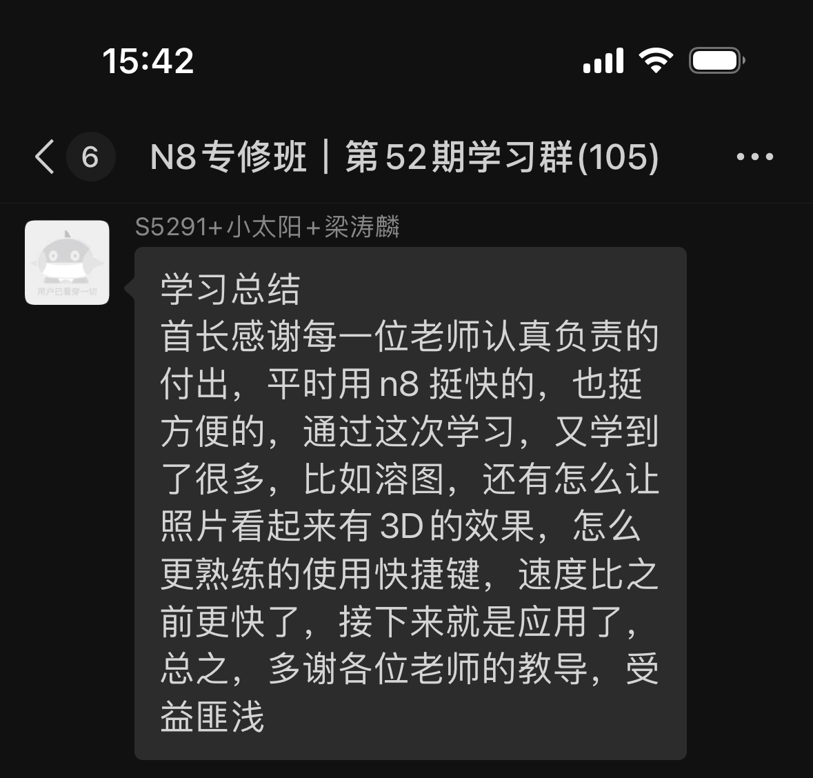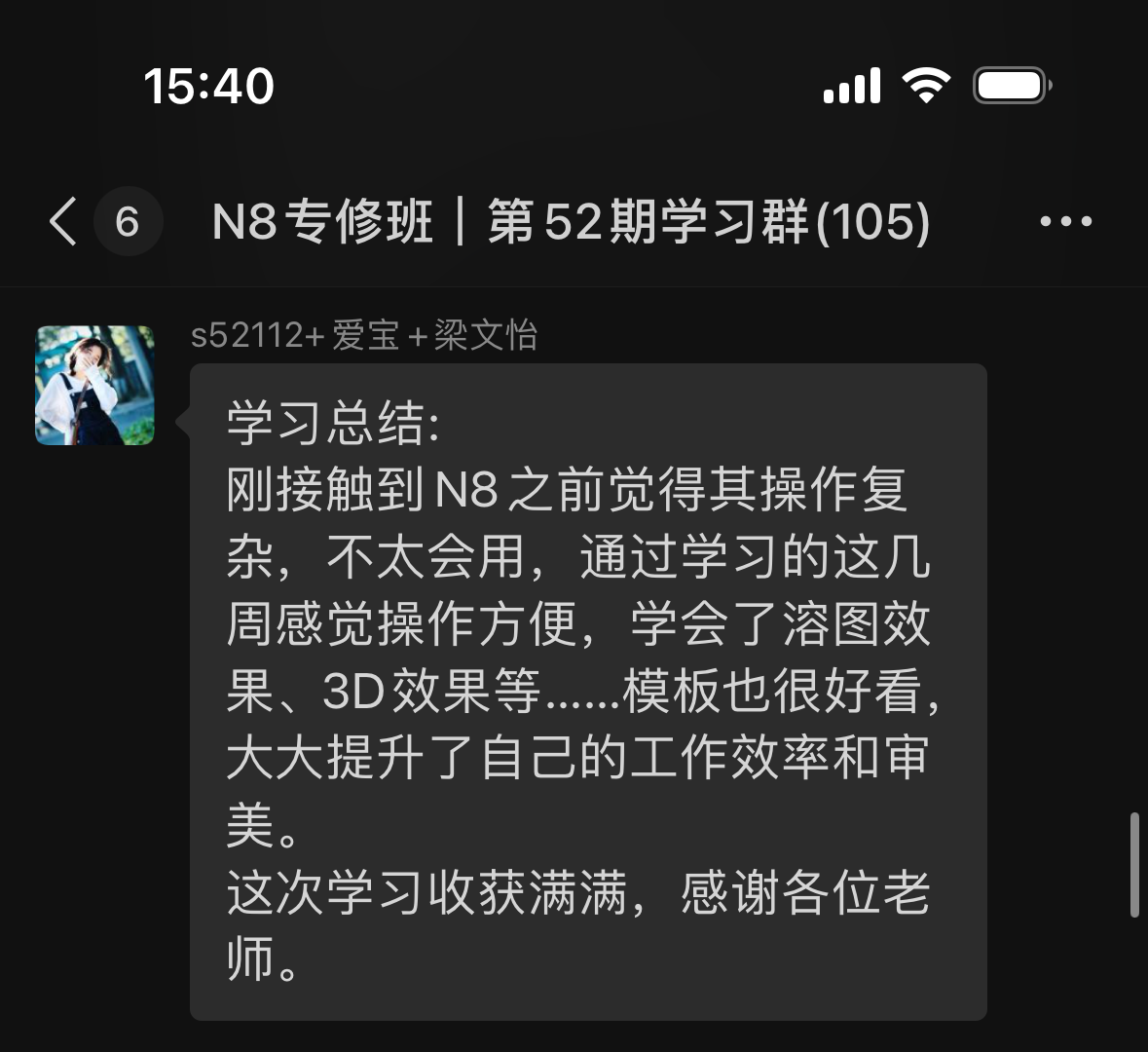 N8專(zhuān)修班第52期學(xué)員反饋和學(xué)習(xí)心得